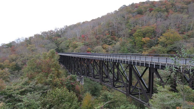 甲子トンネルの途中から眺める紅葉の山景色は見事でした。