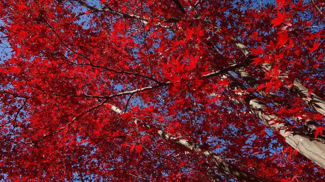 その後、かつらぎ公園へ。ここのカエデは色鮮やかです。